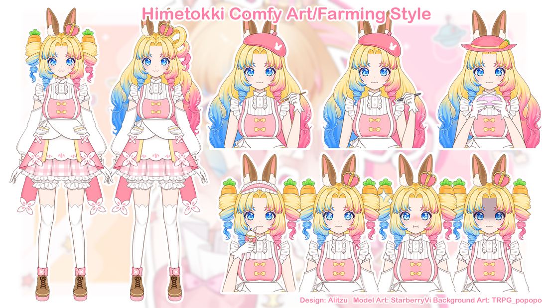 The name ‘Himetokki’ is a combination of the words 姫 Hime (Princess, Japanese) and 토끼 Tokki (Bunny, Korean). The Kanji is 姫徳器, 徳器 (tokki) meaning virtuous vessel, because she is a royal, virtuous bunny! AIYU, stems from 愛玉 Ai yu (The Jelly!), but can also be predicted as short for 愛ゆえに Ai yueni (Because of love). Hime streams because she loves it and loves her henchbunnies!