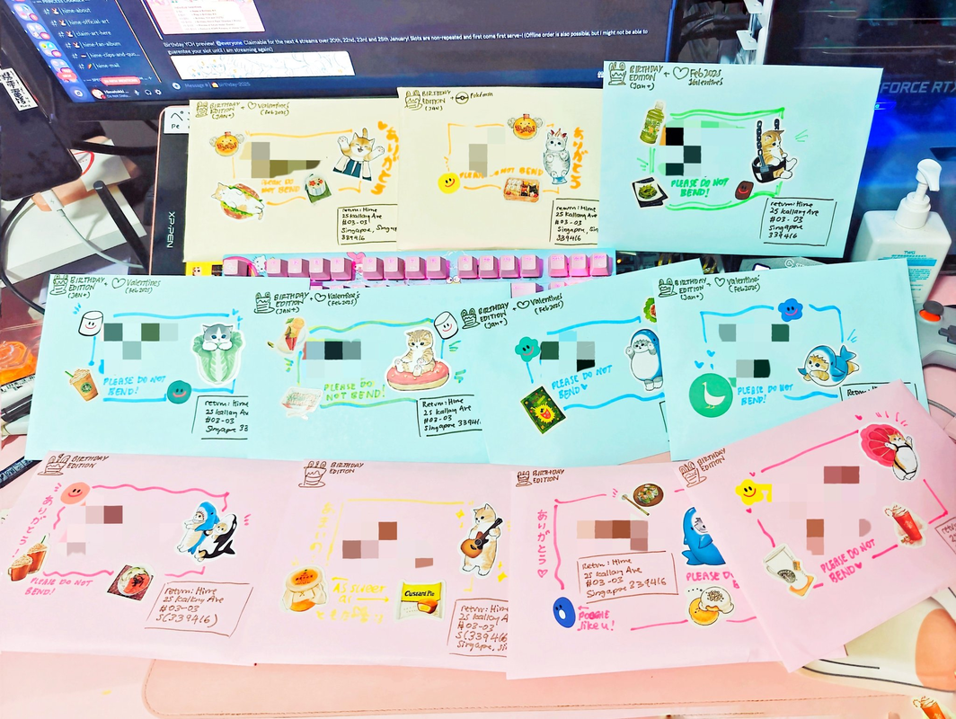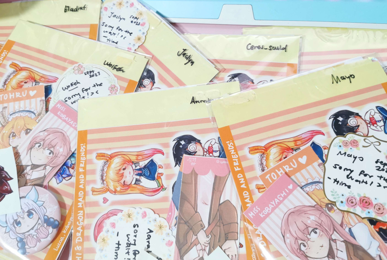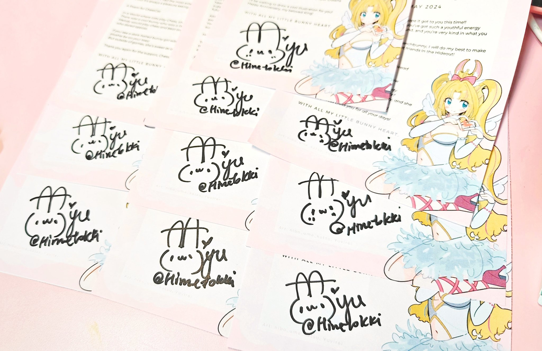 Non-tracked mail includes video mailing proof of Hime posting out your items provided via Ko-fi or DIscord