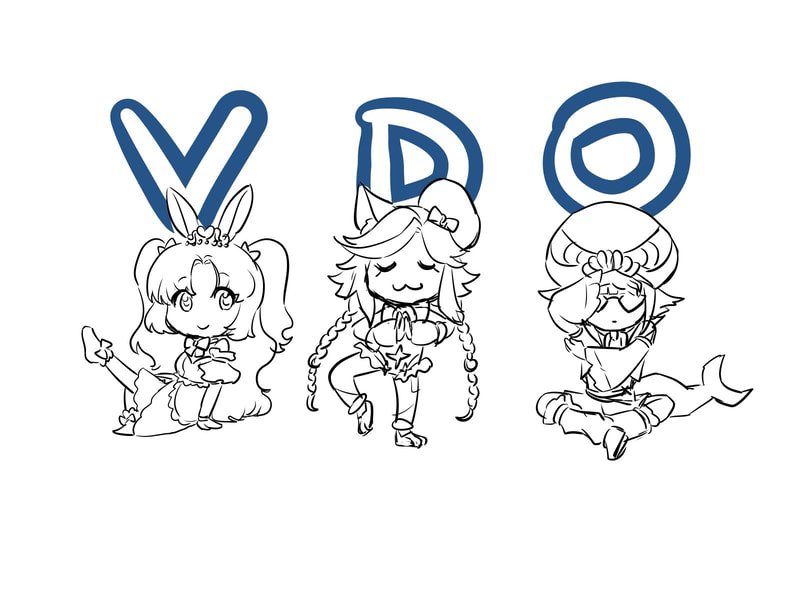 Min was my first Vtuber mama! She conceived Hime from scratch and I owe all of my current branding image to the foundations she lay. Min continues to be a cornerstone member of V:DO, taking on many of our official art projects and never failing to impress! Most of her work are in the official art pages, so I featured her unpublished sketches here!