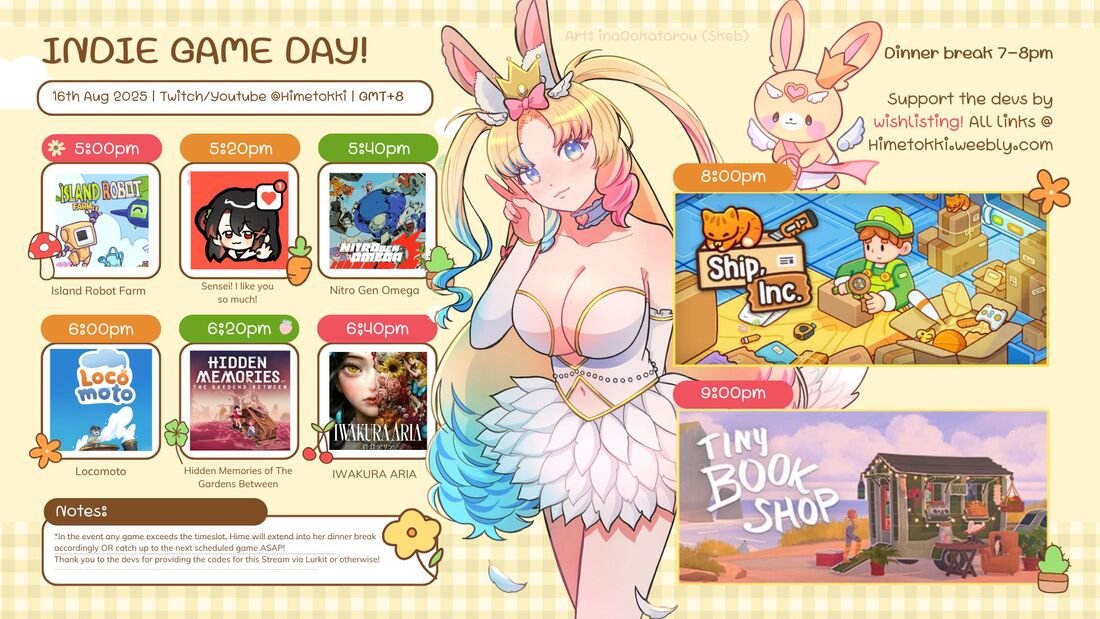 I am so so excited to give a number of indie games a try tonight! Please support the developers by wishlisting or getting the game if it interests you! Big thanks to Lurkit for majority of the keys from today's stream, and Amy from Rogue Deck for the key to Ship, Inc.