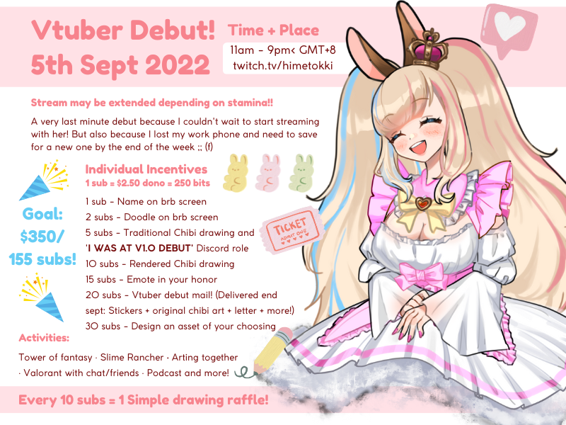 September 5th was when I debut 1.0, who has a very special place in my heart. It was last minute because I couldn't wait to start streaming with her again, but that week, I also lost my work phone and needed to raise funds for a new one! After about 2 months of not streaming, it was so great to be back. Although many of my 2020-2022 followers did not return because of the shift in representation, many also did return, and I'm ever grateful for the people who have supported me despite the change.