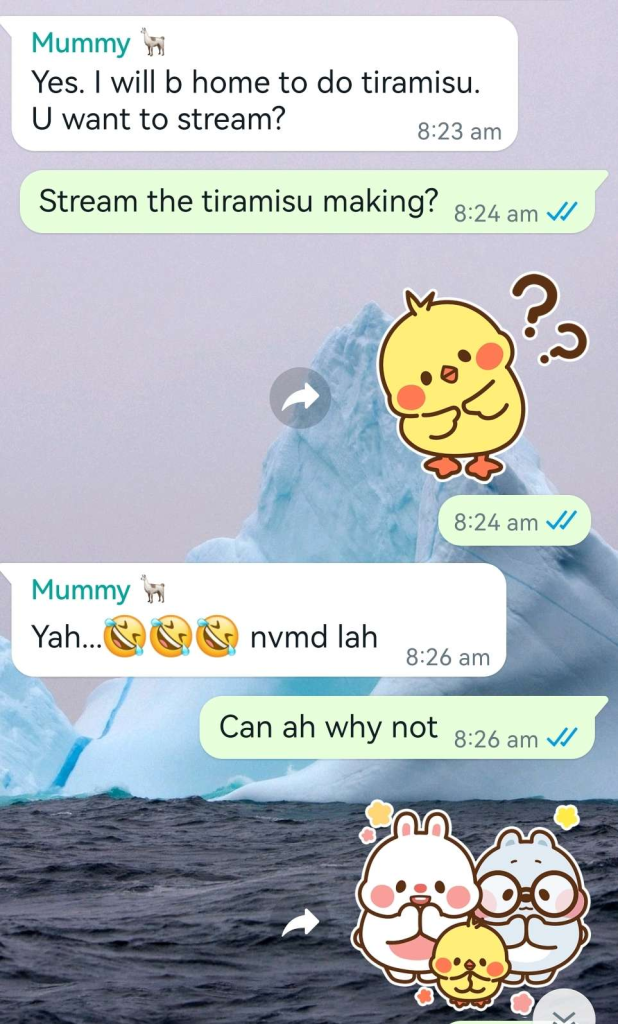 In this stream, I spoke as my most natural self since I was with her! She was eager to share her tiramisu making tips and recipes with the class. I’m so grateful for my mama who supports this hobby.