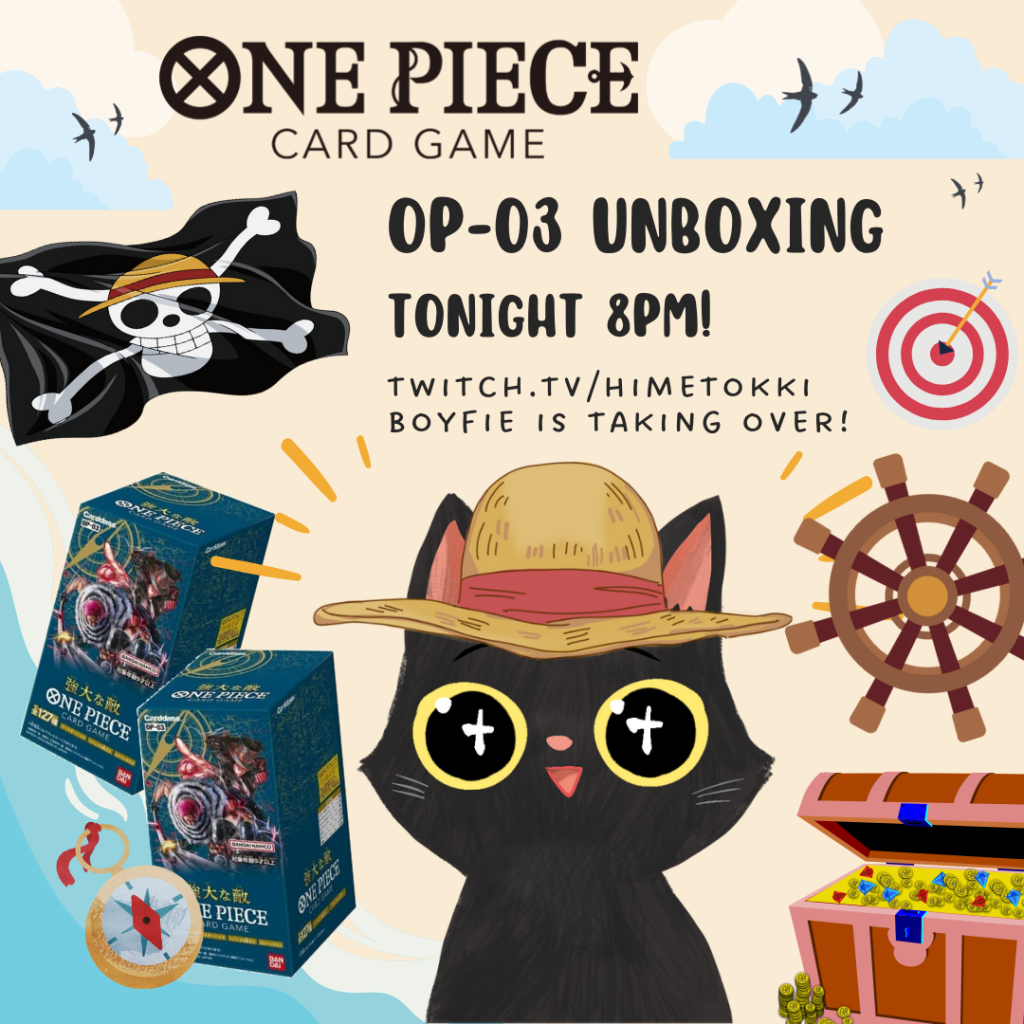 My then-boyfriend (now husband), Chewy, was super excited to open his first OP-03 booster boxes, so he came by the stream to chat and unbox them!